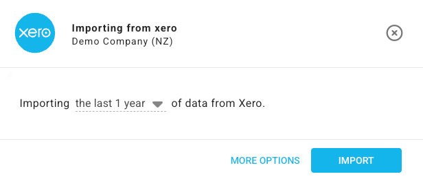 It will then ask how much history you would like to import (we recommend around 1 year) then click import. For larger organisations this can take awhile as the accounting software limits the speed larger organisations download at. If the load bar stops moving this does not mean it has failed, try waiting 5 minutes.