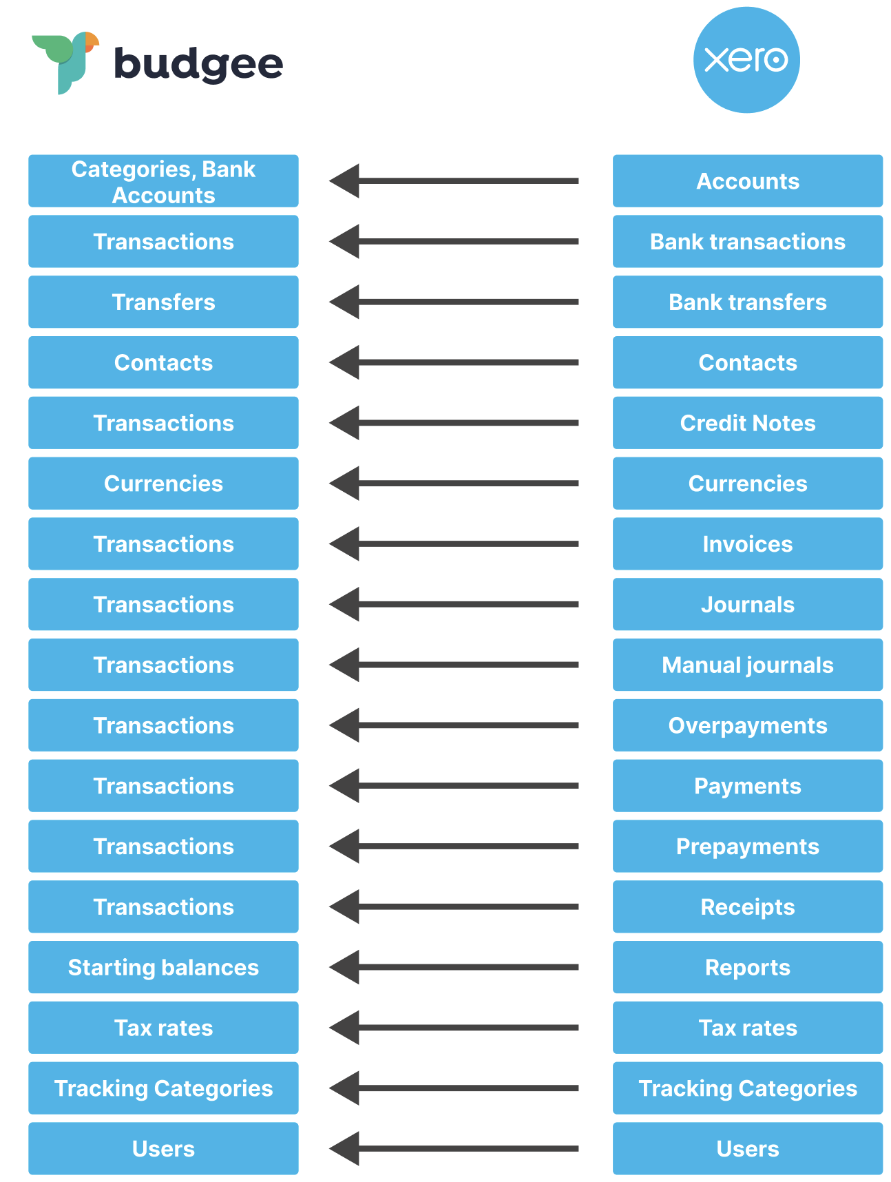 Here is how what is imported from Xero maps to what is in budgee