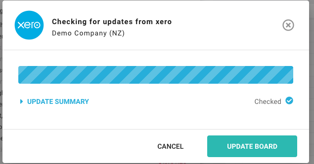 If you wish to update the board with the latest transactions from your accounting software click the Last update button, on the left side of the header.